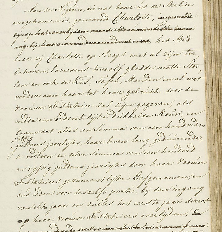 De Franse Hugenoten Abraham Vernezobre en zijn vrouw Madelaine Fizeaux vestigde zich in 1750 in Amsterdam, na een verblijf van 10 jaar in de kolonie Berbice. Zij namen de tot slaaf gemaakte Charlotte mee. Charlotte verbleef in Amsterdam in het huurhuis van Madelaine Sophia Fizeaux op de Heerengracht bij de Leidsegracht. Uit de later eveneens door Cornelis van Homrigh opgemaakte boedelinventaris concludeert historicus Jean Jacques Vrij dat Charlotte in Amsterdam als persoonlijke bediende in de kamer van Madelaine Sophia sliep.