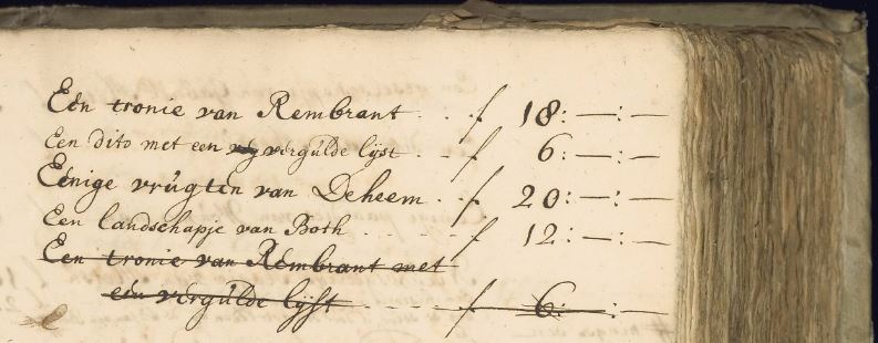 De Rembrandts werden overigens op 18, 6 en 15 gulden geschat. Dat was minder dan zijn bed en hoofdkussen...
