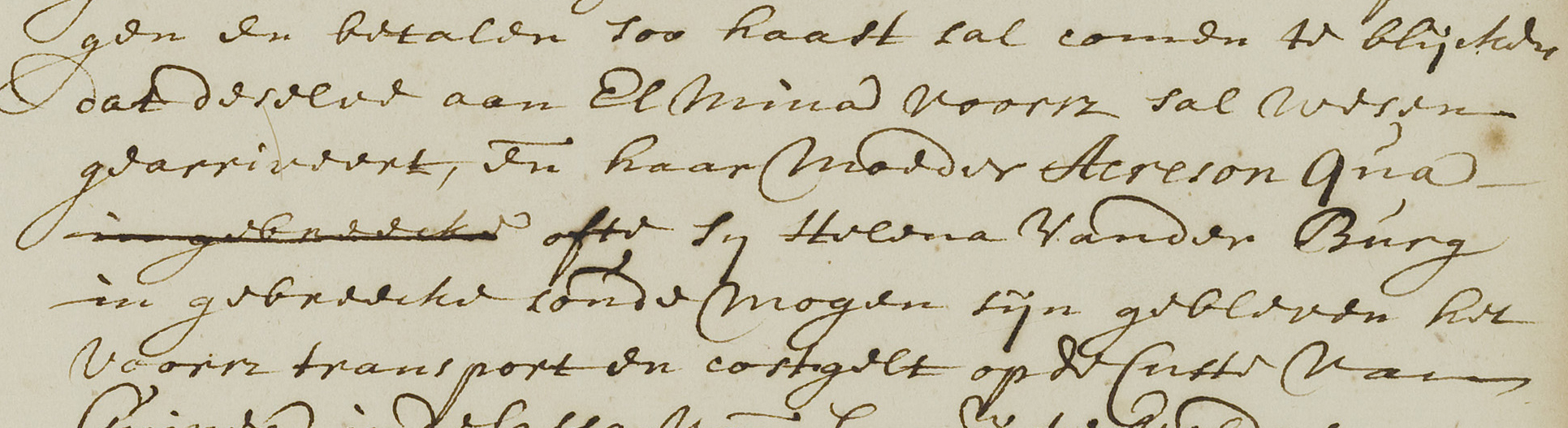 Was Helena net als haar moeder Elminese van geboorte, en zo ja hoe was ze dan in Amsterdam verzeild geraakt? Een akte uit hetzelfde protocol, van ruim 27 jaar eerder, biedt inzicht. Op 5 maart 1685, inventariseerde notaris Pelgrom in het West Indisch Pakhuis de nagelaten goederen van oppercommies Martin van der Burgh, die op de thuisreis uit Guinea aan boord van de Vrijheid gesneuveld was 'in een actie tegens seeckere zeerover.' Dat gebeurde op verzoek van de voogden van Van der Burgh's 'vijf natuijrlijcke naergelatene kinderen ende geïnstitueerde erfgenamen met namen Jan, Willem, Helena, Abraham & Jacob. Zij waren, in het crue taalgebruik van die tijd, 'bij seeckere negerinne in Guinea voorszeght geprocureert.' Helena, toen een meisje van een jaar of zeven, en haar vier broertjes, die hun vader zo plotseling, op zo'n traumatische wijze hadden verloren, verbleven in Amsterdam ver weg van hun nu schijnbaar naamloze moeder.