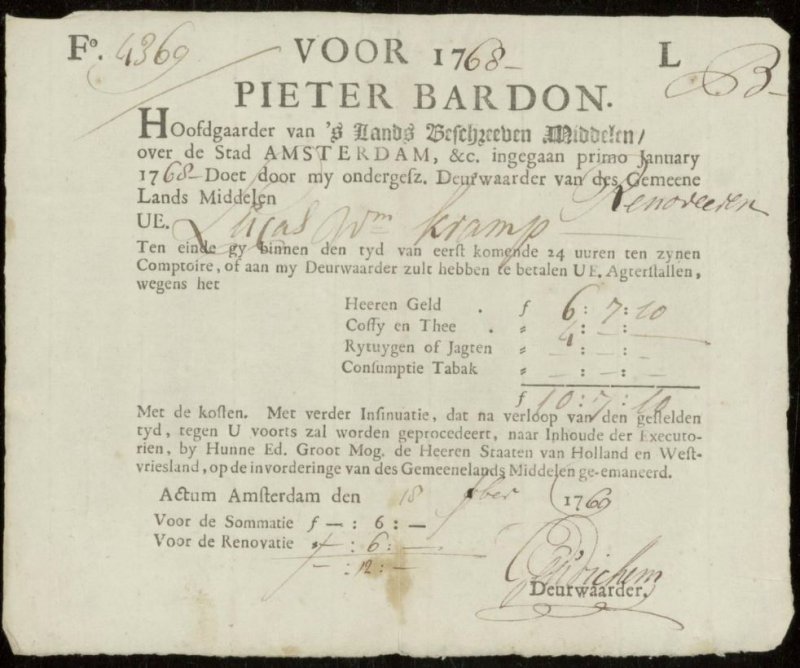 - Notulen van de Admiraliteit van Amsterdam, Nationaal Archief Den Haag 3.01.09 inv.nr. 1287.