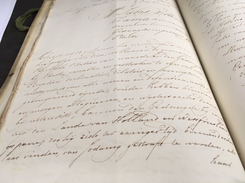 Ik ondergez. Commis van 's Lands Werf betuige, dat het my leet is tegen den Equipagiemeester deses Collegie, Mr. W. Sautyn, als mede tegen den Opperbaas Timmerman, John May, diverse zware en verregaande beschuldigingen van malversatie, meyneedigheid en eygenwillige directie, gepaart met overtreding van Resolutien en regelementen van den Raad, in vago en zonder valabel bewys met onbetamelyk expressien aan Haar Ed: Mog: Heeren Commissarissen van 's Lands Magazyn en Timmerwerf te hebben opgegeven.