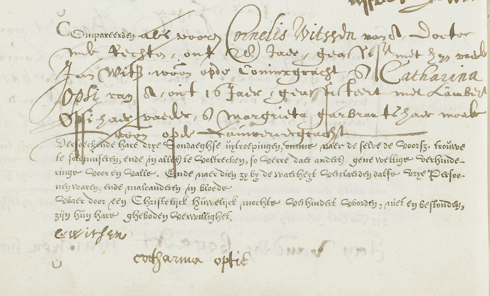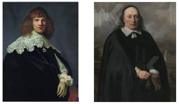 Cornelis Witsen is ook aan de oude kant met 28 jaar. In zijn latere leven wordt hij burgemeester van Amsterdam, waardoor er meerdere portretten van hem bekend zijn. Durfde ik andere bruidegoms uit te sluiten, na gevonden portretten van latere datum met totaal niet gelijkende gelaatstrekken, bij Cornelis durf ik dat niet direct. Het krullende haar (hoewel vrij donker op het schuttersstuk) en het kuiltje in de kin kan verscholen zijn achter het sikje. Durft een kenner van gelaatstrekken deze kandidaat te elimineren?