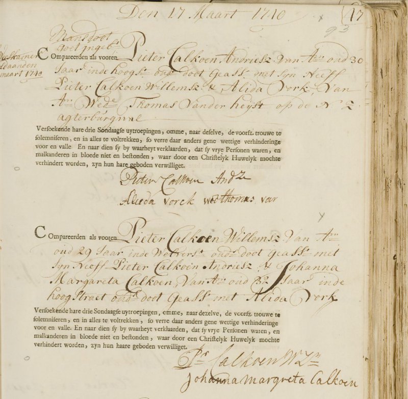 Om welke Pieter Calkoen gaat het hier? Deze Pieter Calkoen lijkt iemand die gewend is zijn zin te krijgen, en bovendien was hij in staat direct zijn portemonnee te trekken om de boel te sussen. Zijn gedrag en uitlatingen laten zich weer niet zo goed rijmen met een chicque familie. De oud-schepen en burgemeester Pieter Calkoen bezat diverse huizen op de Keizersgracht, maar was al overleden ten tijde van dit voorval. Tegelijkertijd komt de familienaam niet veel voor. Hoe dan ook is het Pieter Calkoen vermoedelijk gelukt om de zaak stil te houden. Tot vandaag.
