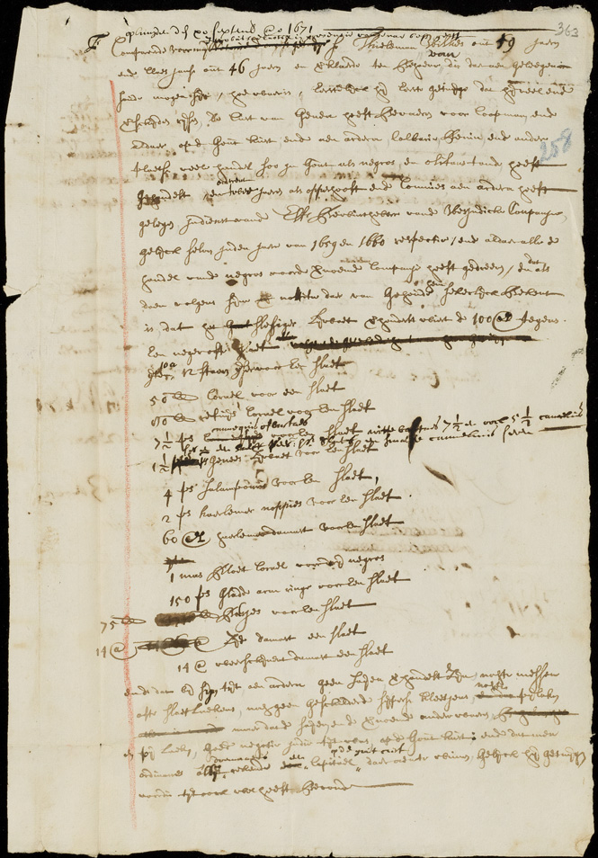 Die waarden waren niet altijd in geld vast gesteld. Sterker nog, in dit document staat de waarde niet één keer in geld uitgedrukt. Wel in koraal, staven ijzer en Haarlemmer damast, het witte goud van Haarlem.