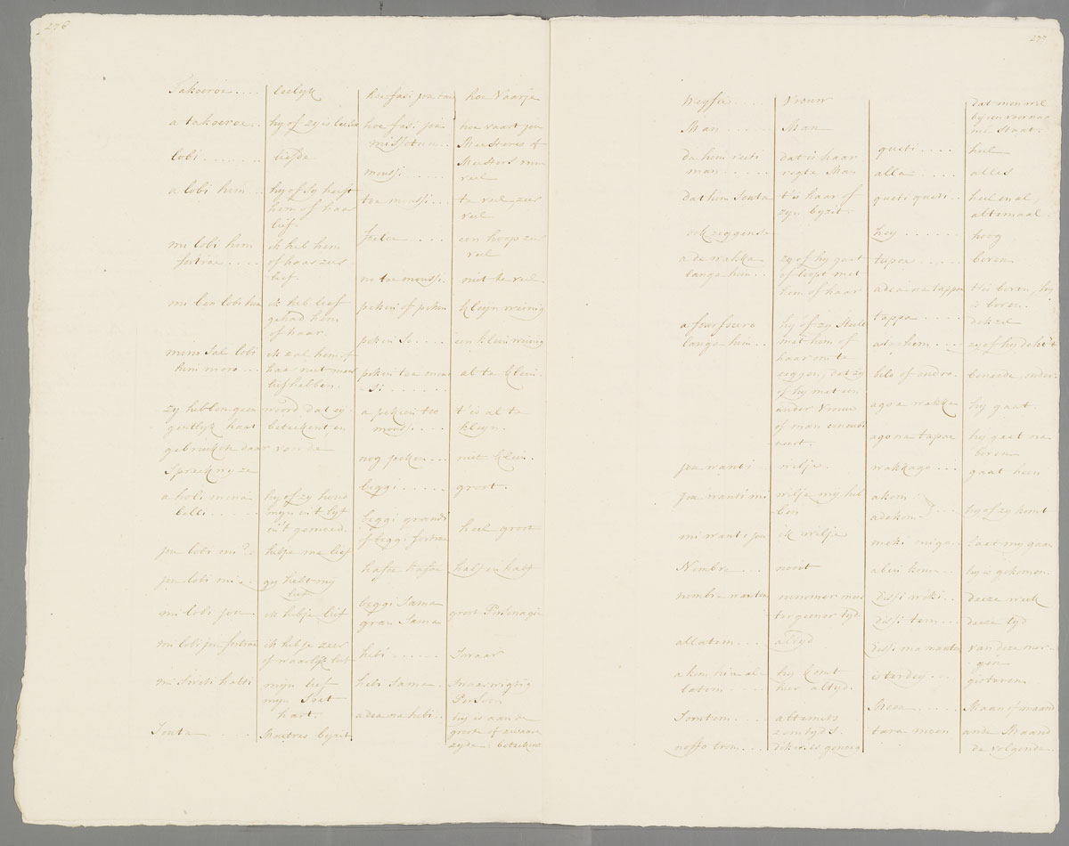 Op de plantages in Suriname ontwikkelde zich het Sranan Tongo. Een op het Engels gebaseerde creooltaal, met invloeden van het Nederlands, Portugees en diverse Afrikaanse talen. In het archief van huize Marquette is een Surinaame woordenlijst van het ‘Neger-Engels’ zoals de taal destijds genoemd werd te vinden uit 1765. De lijst werd opgesteld door de in Amsterdam geboren maar in Suriname opgegroeide Jan Nepveu (1719-1779).